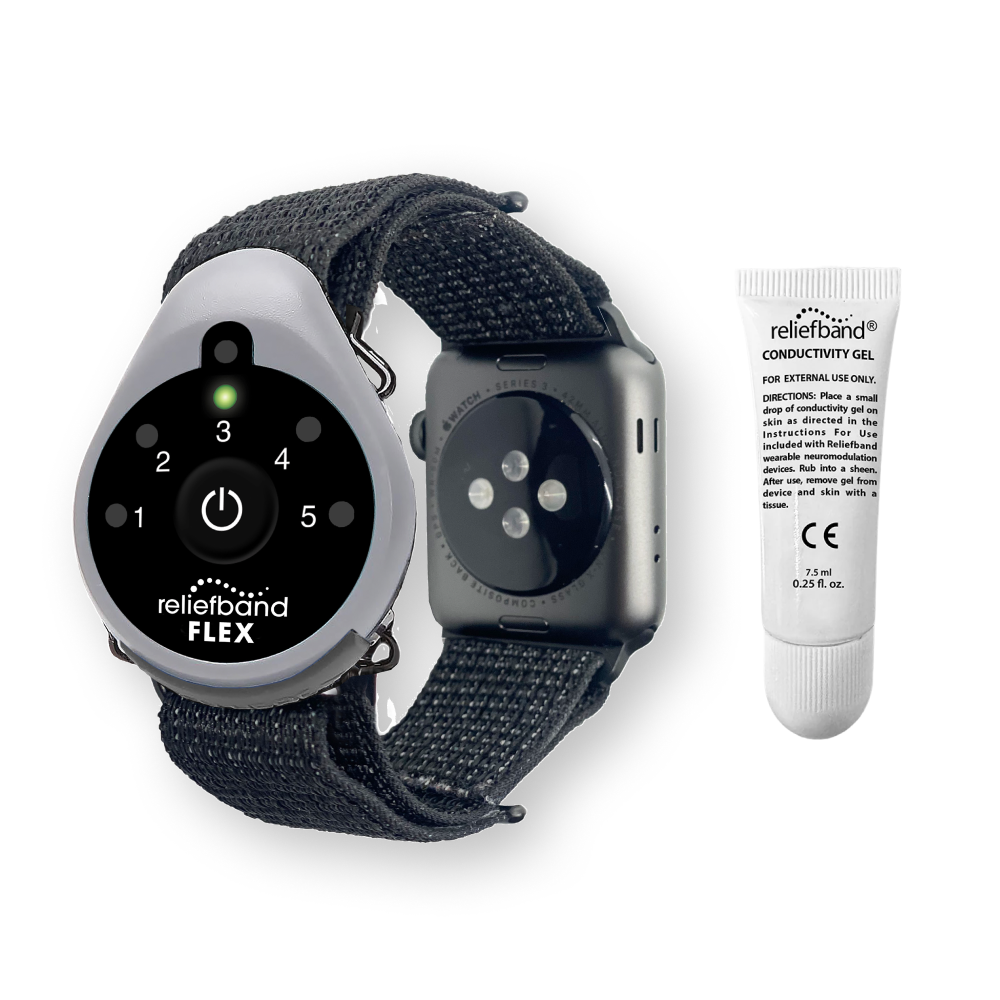 Flex brings you everything you love about the Reliefband® Classic with additional features that allow you to treat nausea comfortably and with flexible options.
